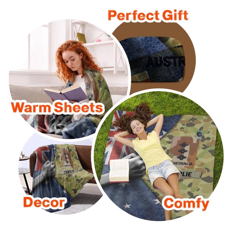 Personalized Australian Veteran/Soldier Rank Camo Quilt Blanket Printed 22DEC-HY27