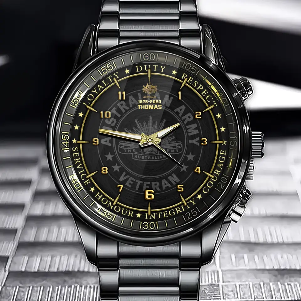 Personalized Loyalty Duty Respect Service Honor Integrity Courage Australian Veteran Rank Camo Custom Name Watch Printed AHKH24581