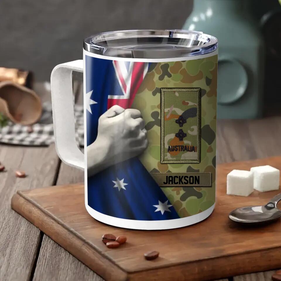 Personalized Australian Veteran/Soldier Rank Camo & Name Insulated Mug 10oz Printed 23MAR-HQ21