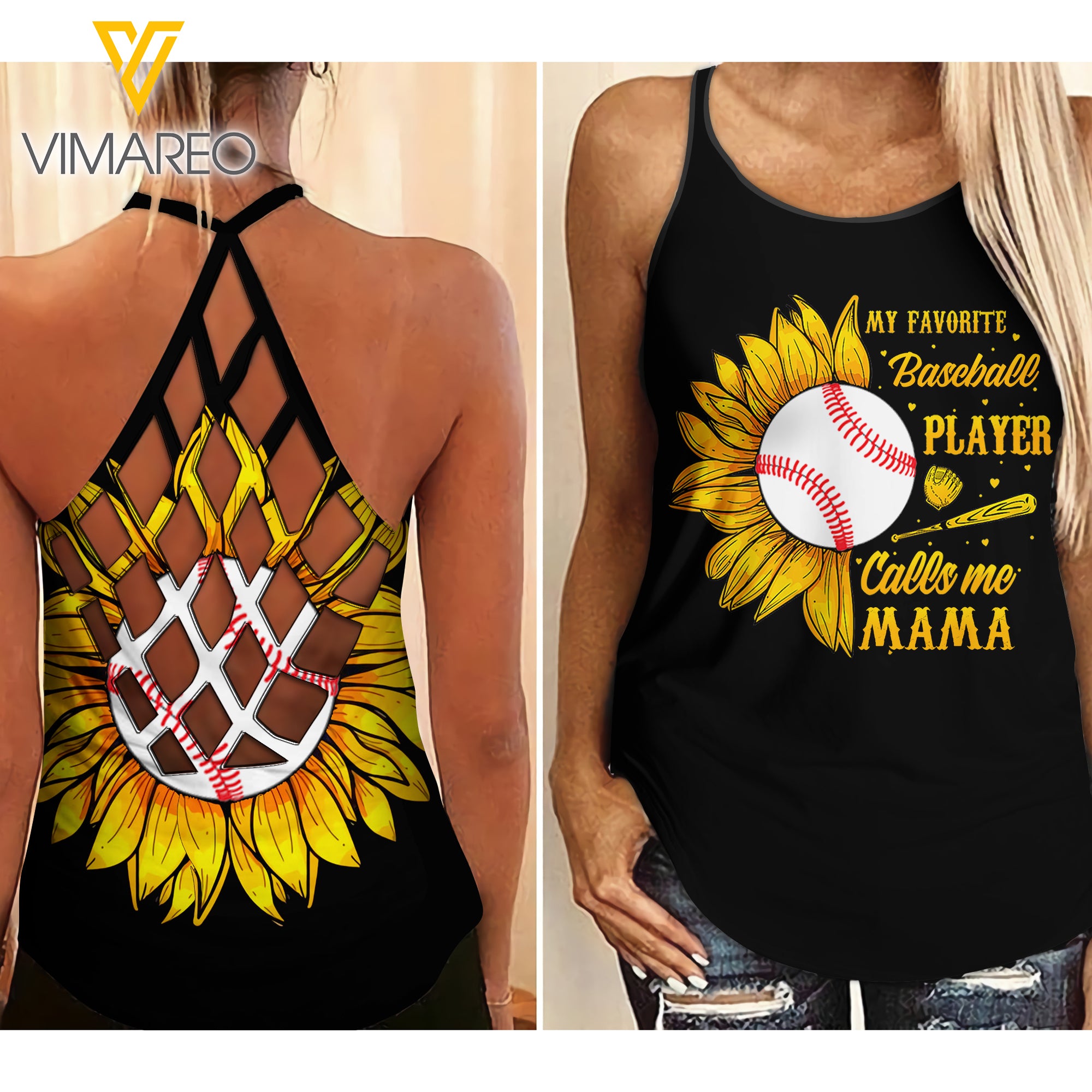 BASEBALL MAMA SUNFLOWER CRISS-CROSS TANK TOP