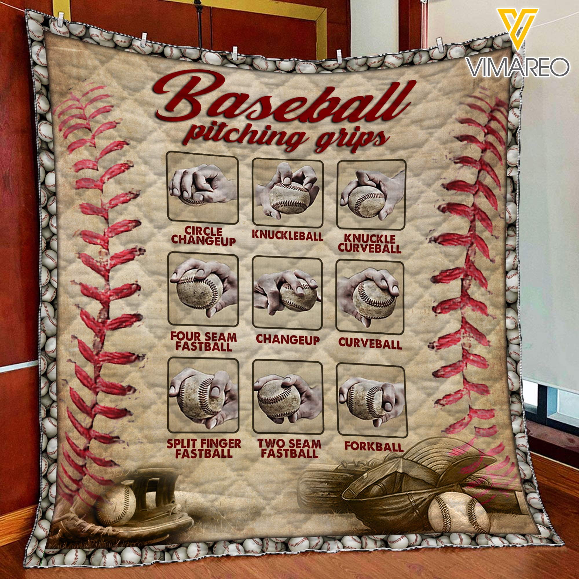 BASEBALL PITCHING GRIPS QUILT PRINTED