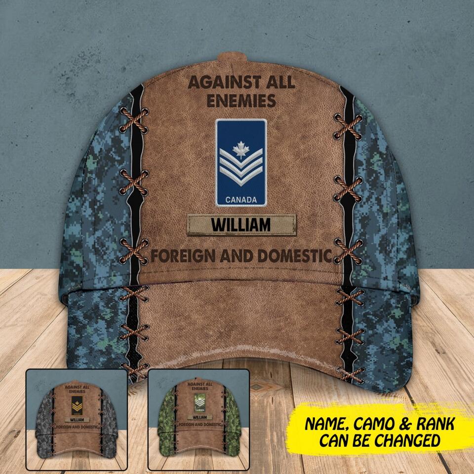 Personalized Canadian Veteran Against All Enemies Foreign and Domestic Camo Rank Peaked Cap 3D Printed 22NOV-HY03