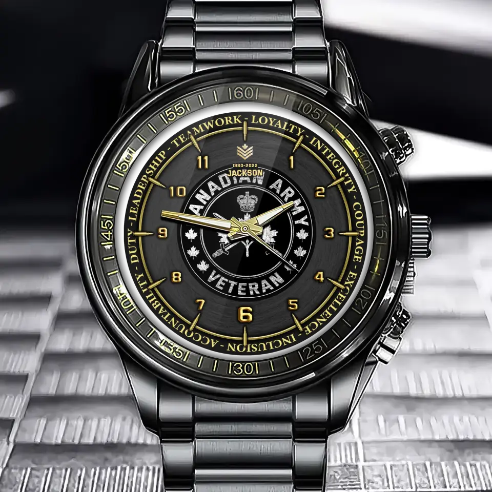 Personalized Canadian Army Veteran Rank Camo & Name Watch Printed AHKH24664