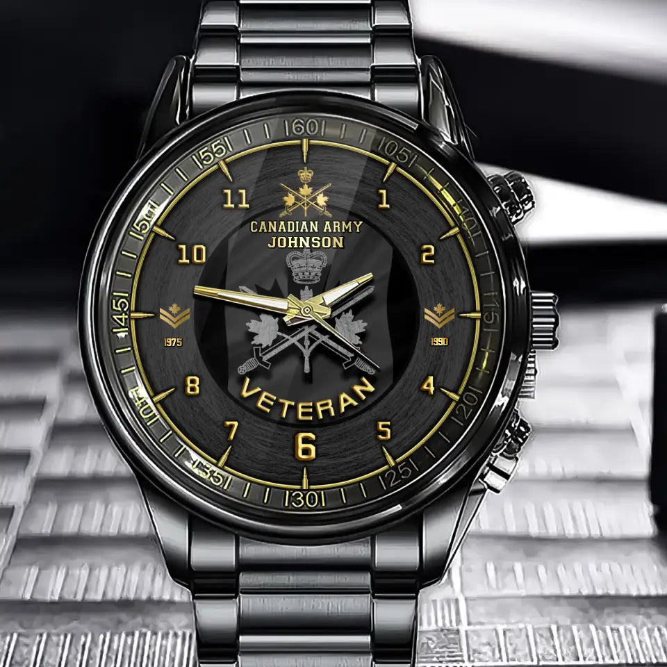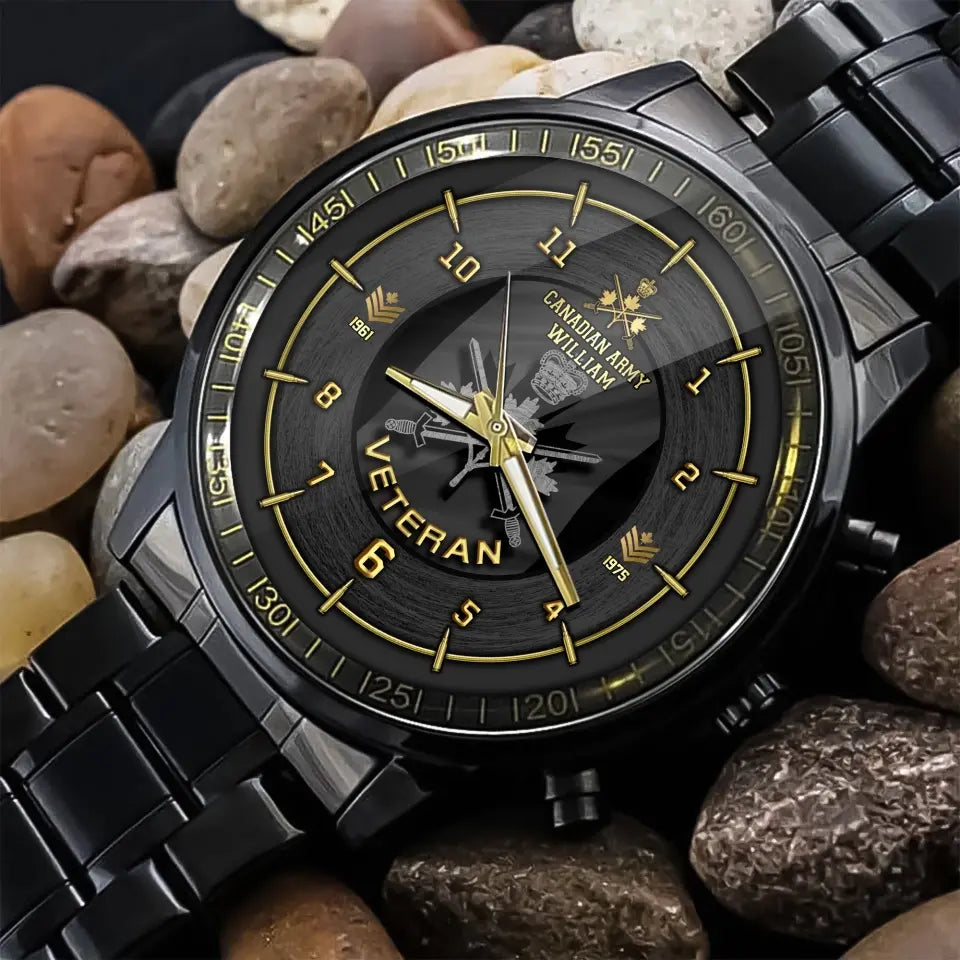 Personalized Canadian Army Veteran Rank Camo Custom Name & Time Watch Printed AHLVA24564