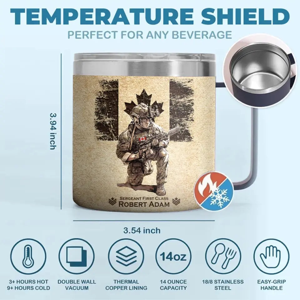 Personalized Canadian Army Veteran Logo & Rank, Name Coffee Cup 3D 12oz Printed AHVA241664