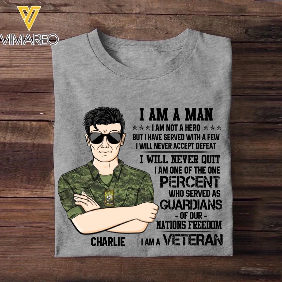 Personalized Canadian Soldier/ Veteran I Am A Man Not Hero I Will Never Accept Defeat Printed Tshirts 23MAR-DT21
