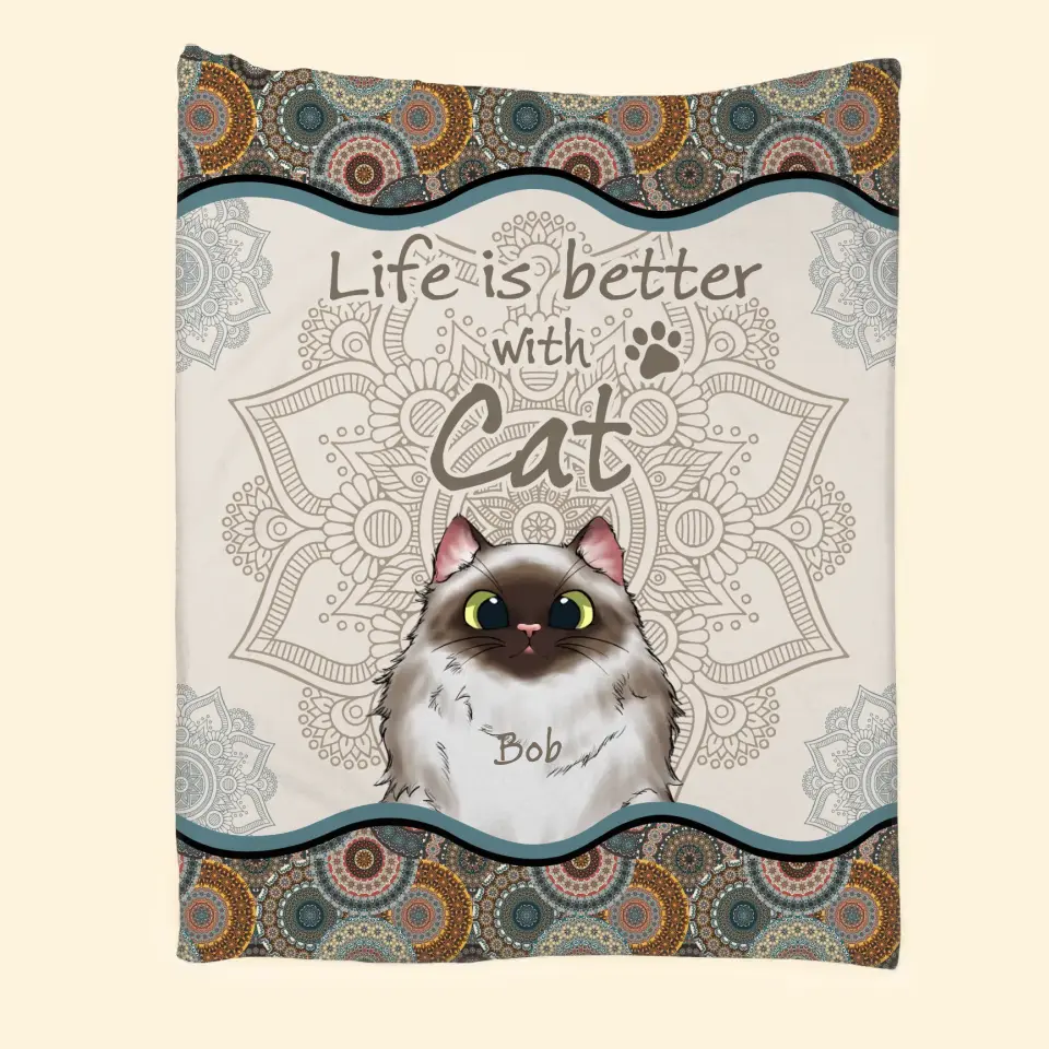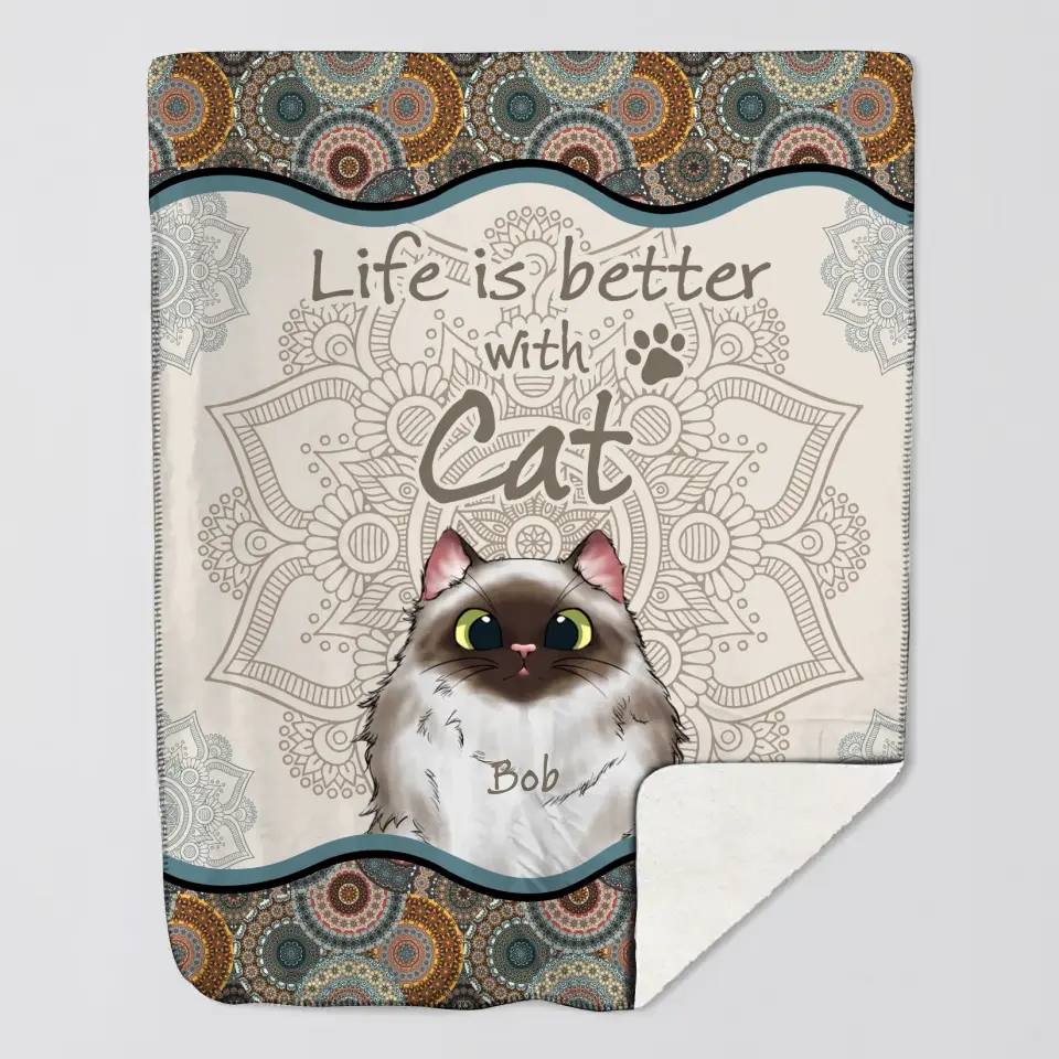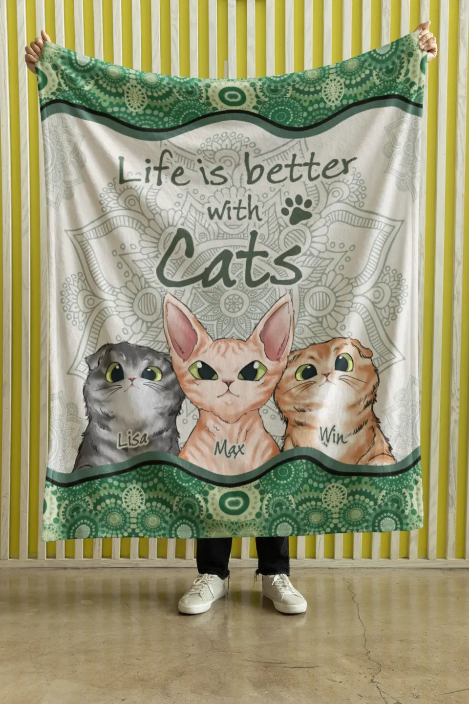 Personalized Life Is Better With Cats Cat Lovers Gift Sherpa or Fleece Blanket Printed HN2410