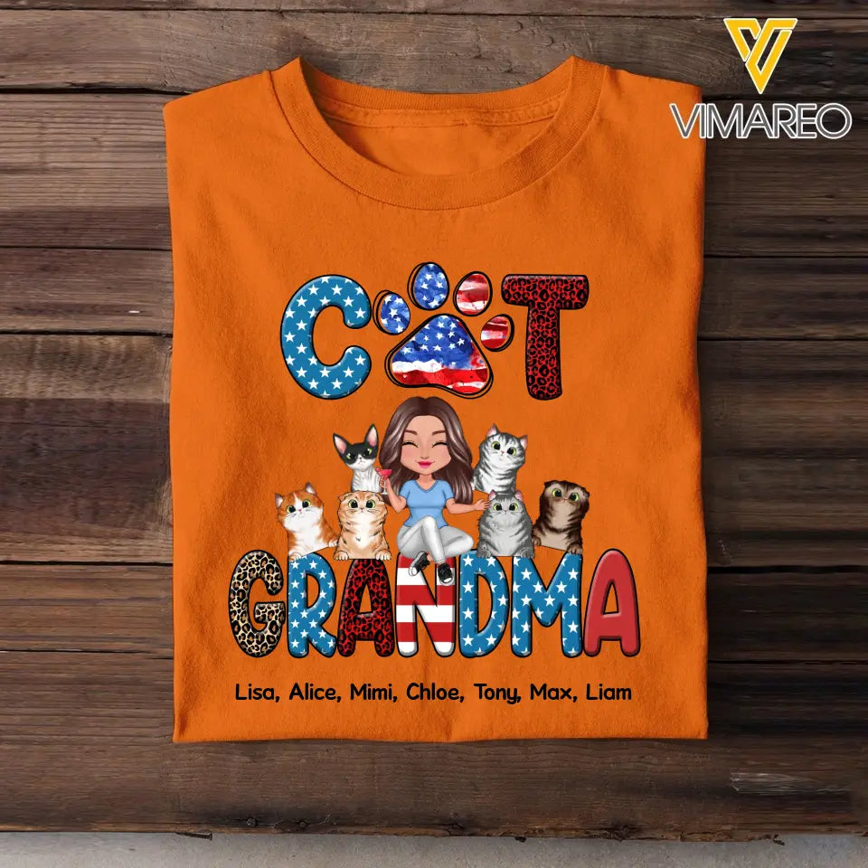 Personalized Cat Grandma/Mom with Name Cat Lovers Gift T-shirt Printed MTPN1506