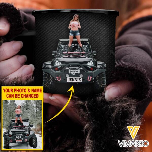 PERSONALIZED JEEP PHOTO GIRL STEEL MUG 12OZ 3D PRINTED QTMA0912
