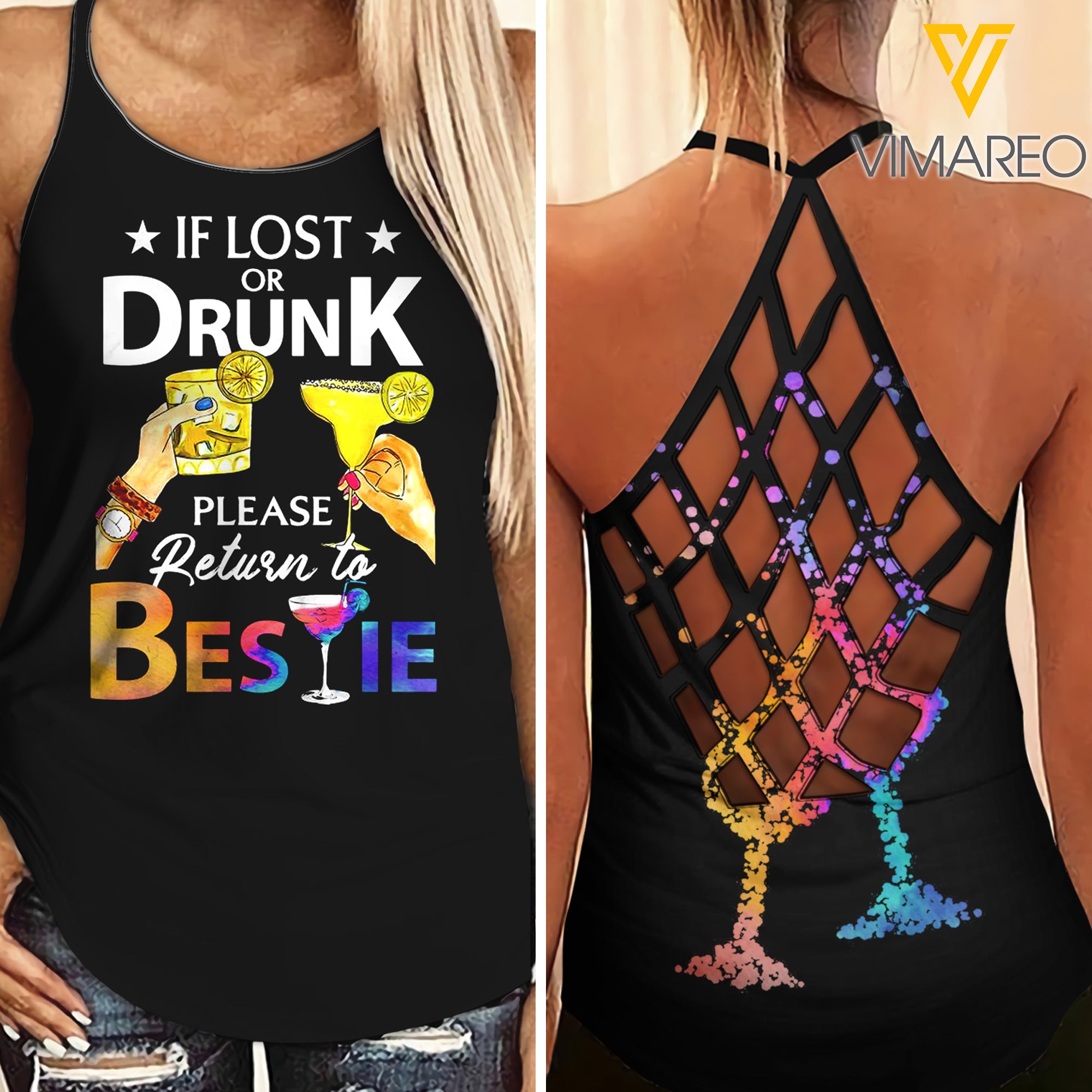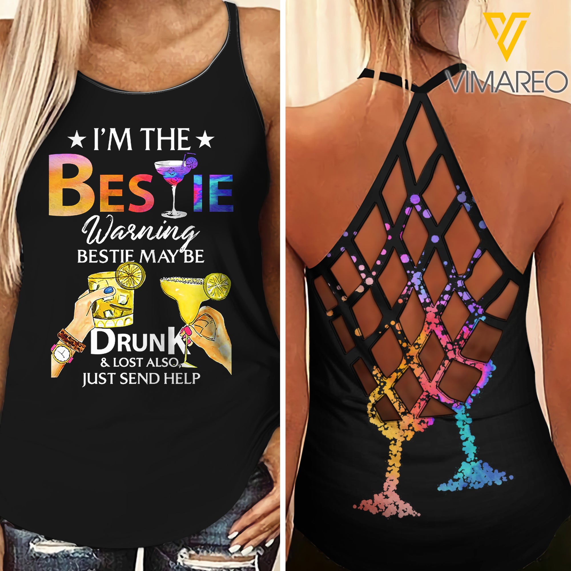 Drunk Bestie 2 Tiedye Criss-Cross Open Back Camisole Tank Top