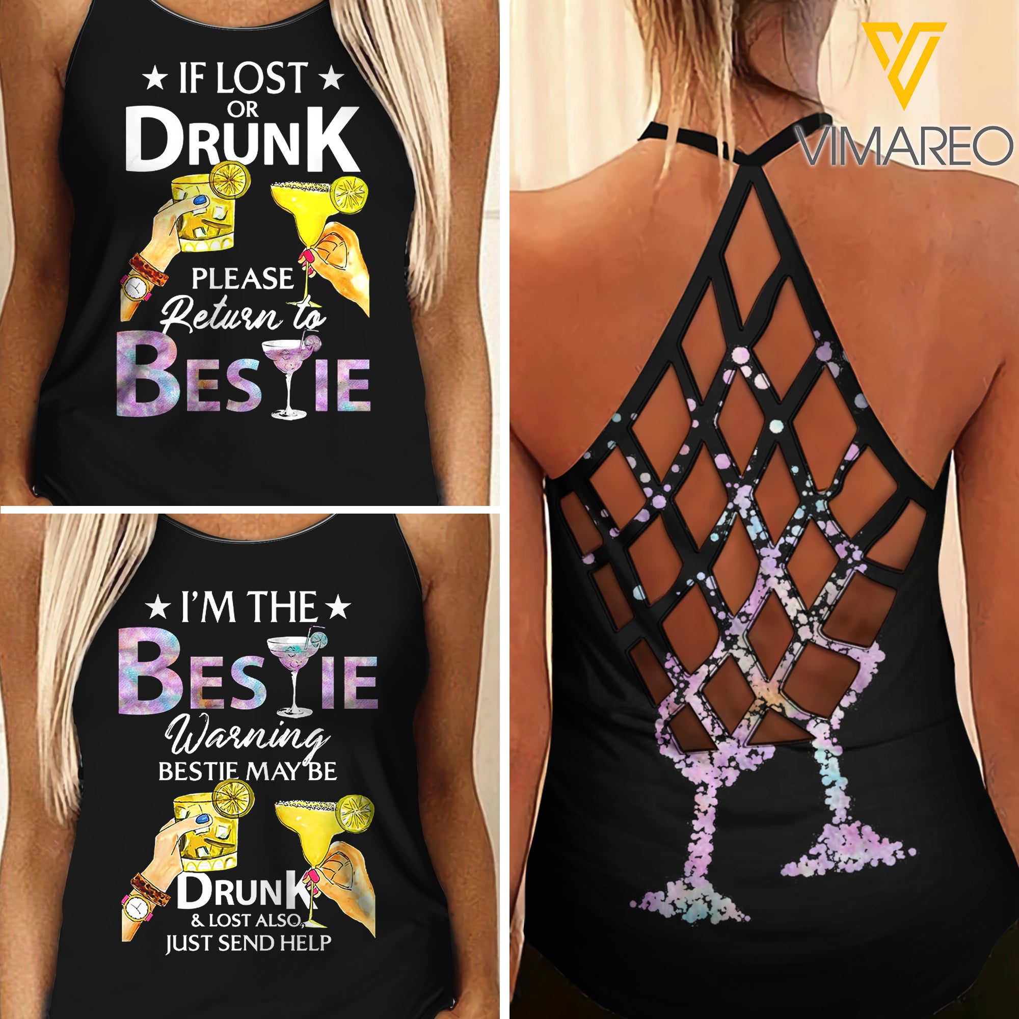 Drunk Bestie 3 Tiedye Criss-Cross Open Back Camisole Tank Top