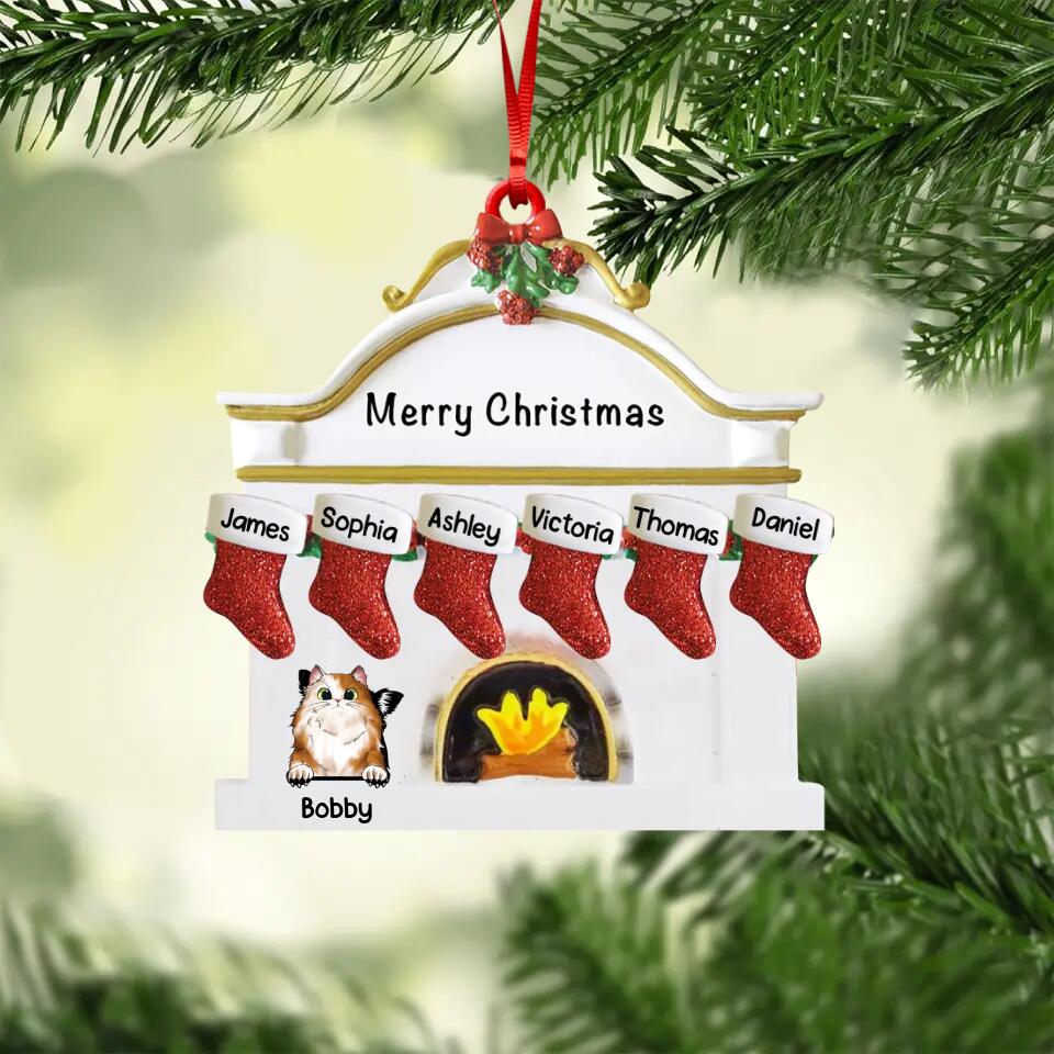 Personalized Merry Christmas Family With Pets Acrylic/Plastic Ornament Printed QTHY3011