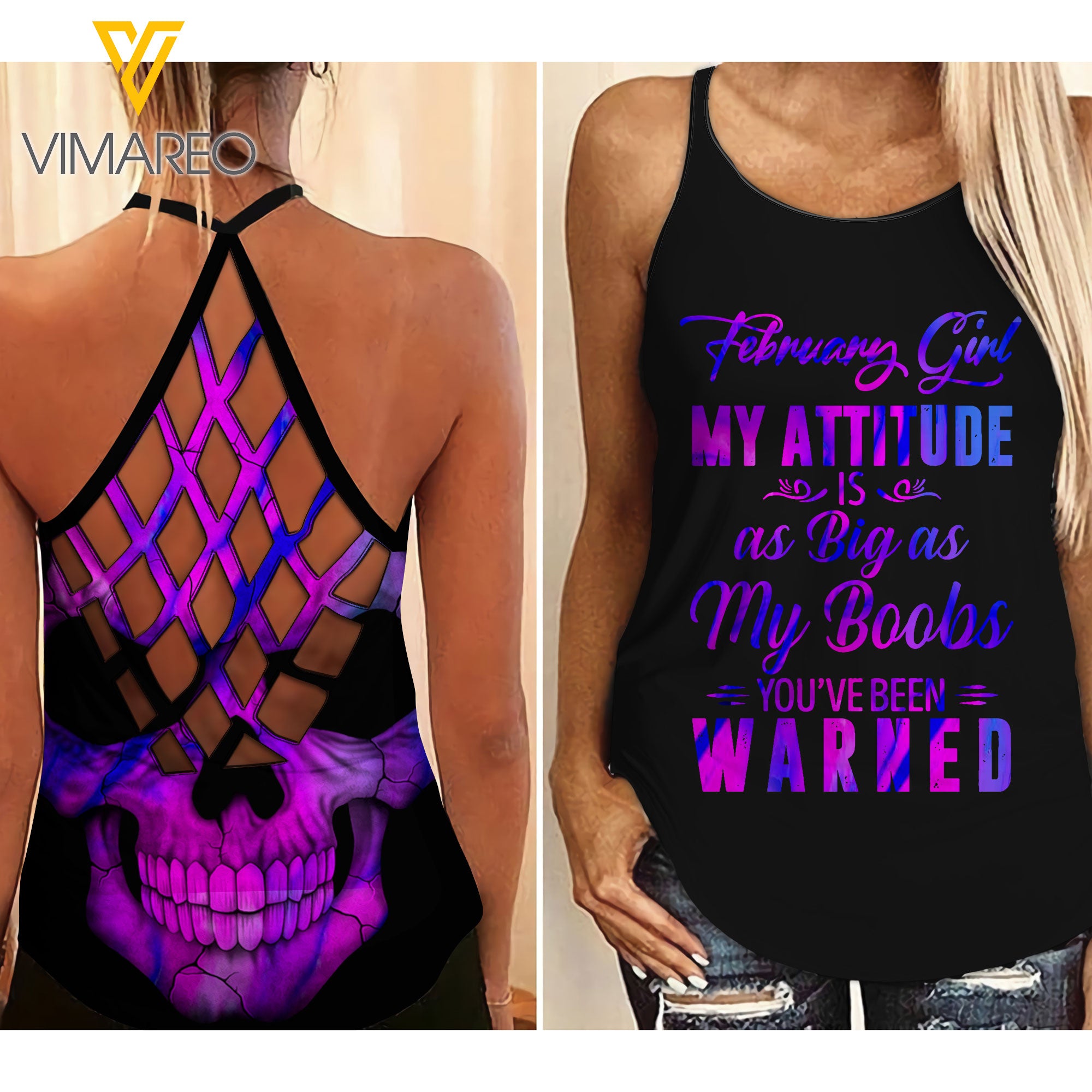 FEBRUARY GIRL ATTITUDE IS AS BIG AS BOOBS CRISS-CROSS TANK TOP TNVQ0702