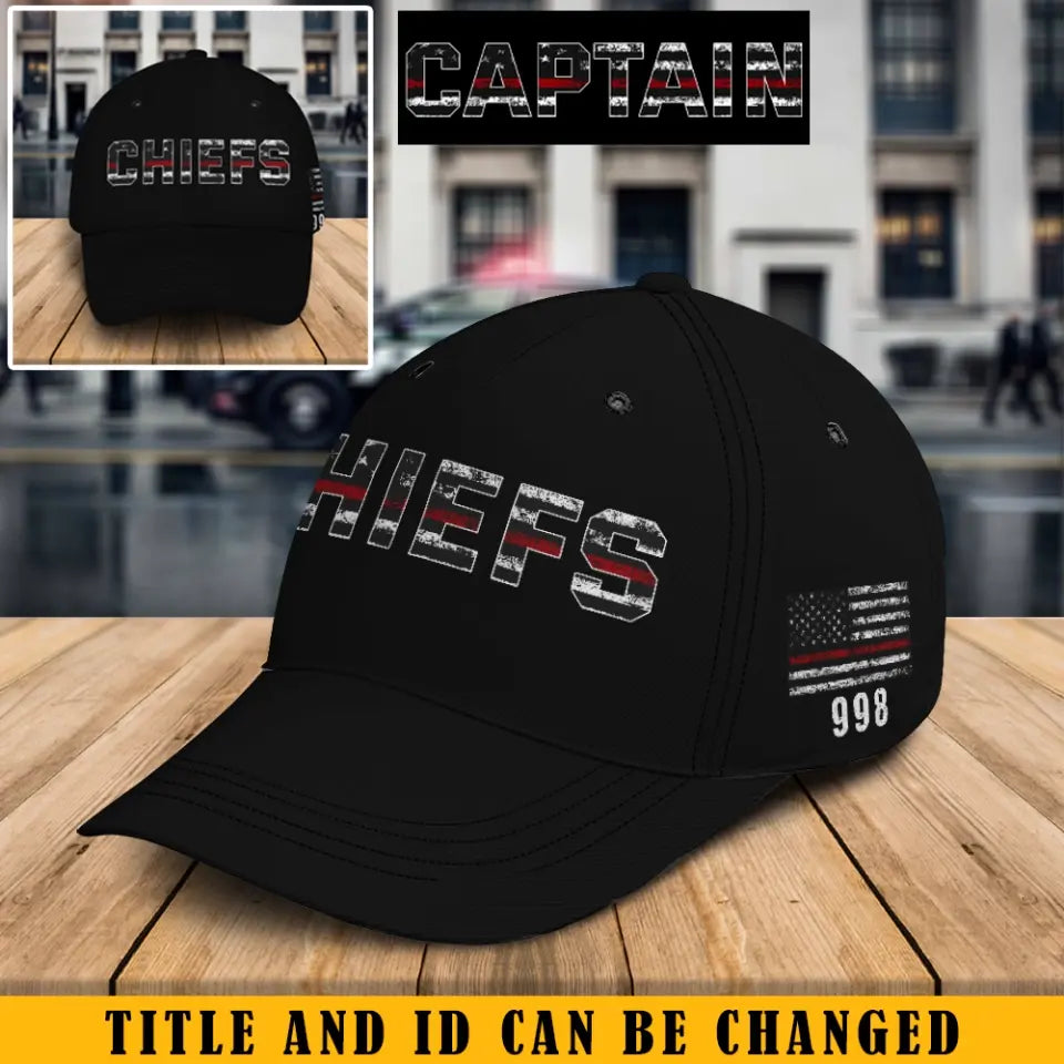 Personalized Title Firefighter And Badge Number Thin Blue Red Flag Black Cap QTKH1680