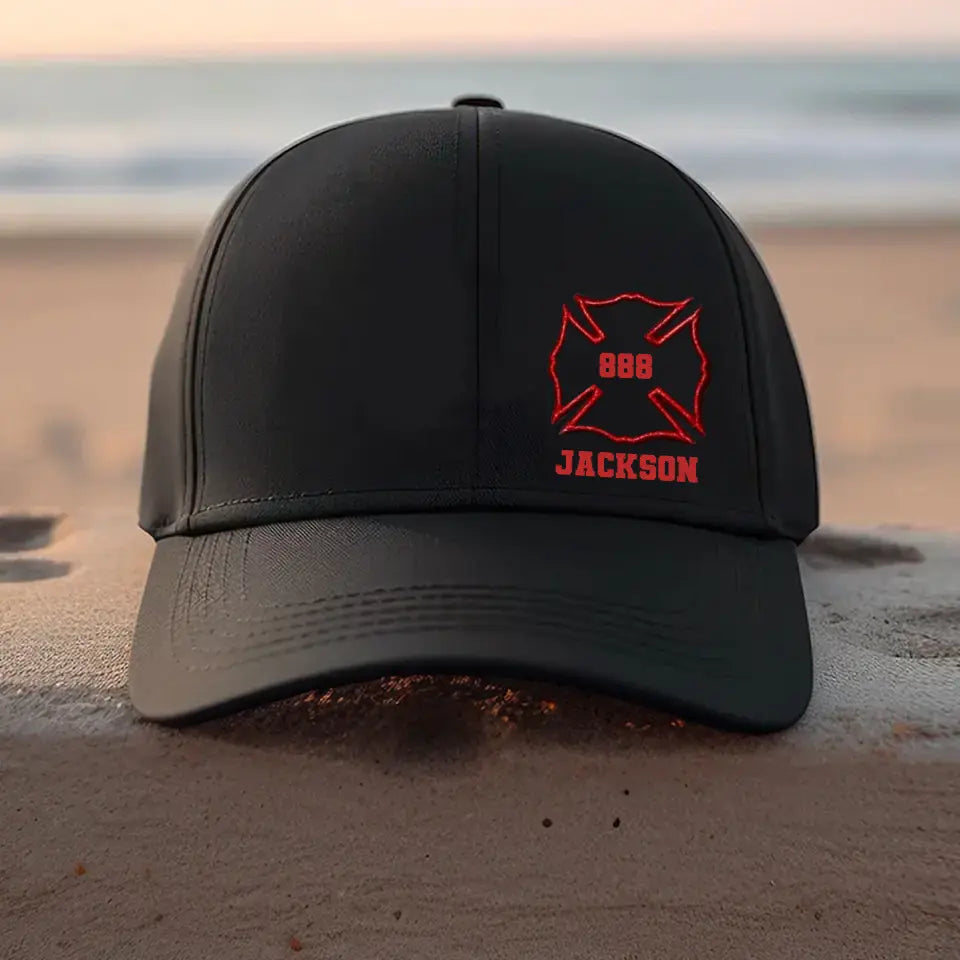 Personalized US Firefighter Badge Embroidered Black Cap QTVQ1707