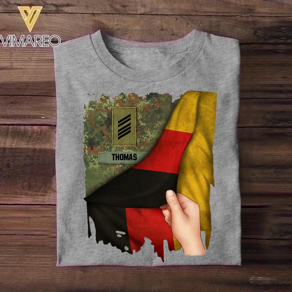 Personalized Hand Holding Flag German Solider/Veteran Rank Camo Tshirt Printed 22DEC-DT01