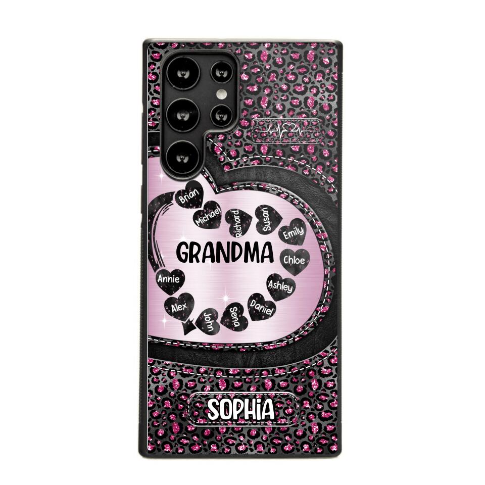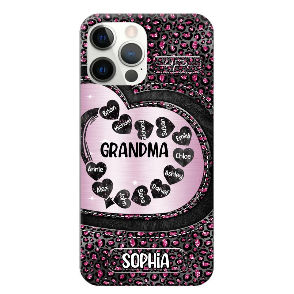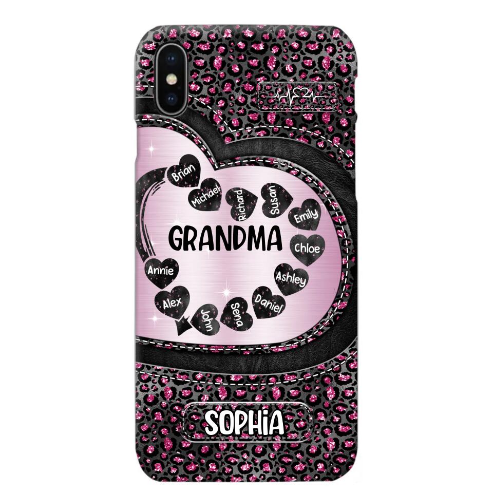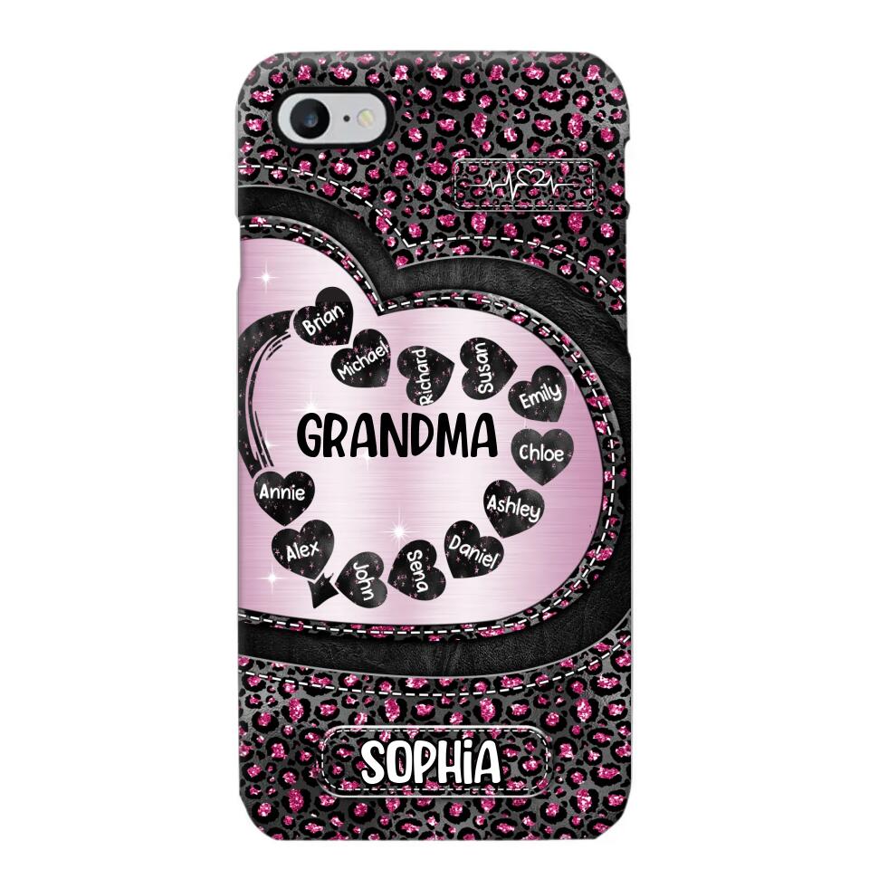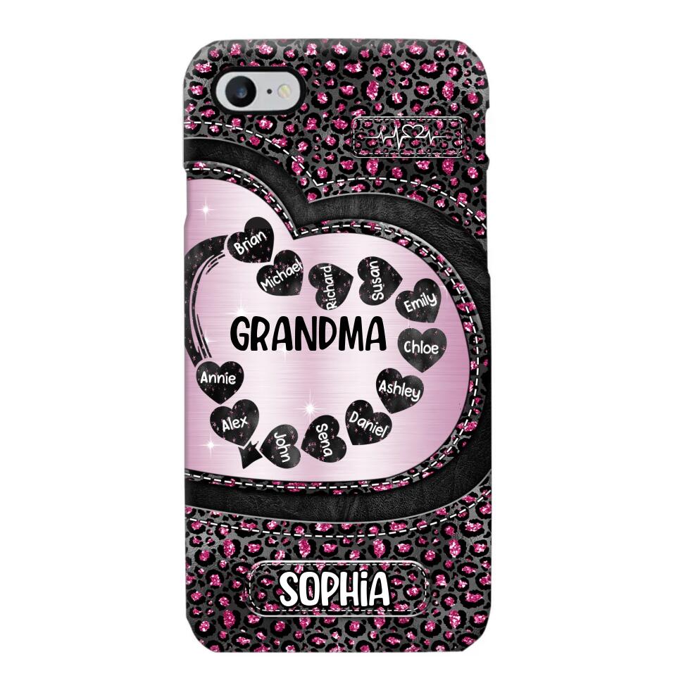 Personalized Grandma Nana Auntie Mom Heart & Kid's Name Phonecase Printed QTHQ2003