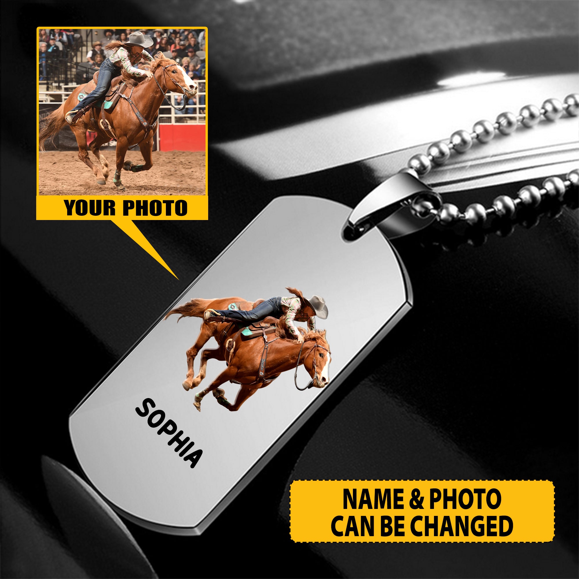 • Material: Stainless Steel, Text Engraving and Photo Printing with a protection layer.