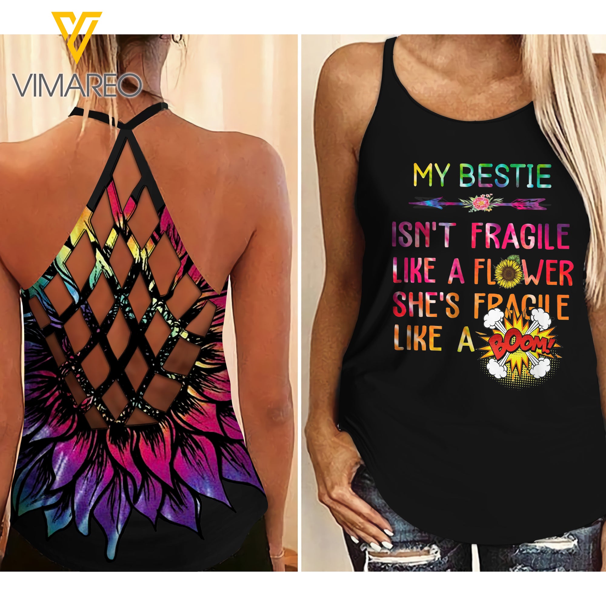 MY BESTIE IS FRAGILE LIKE A BOOM Criss-Cross Open Back Camisole Tank Top Couple