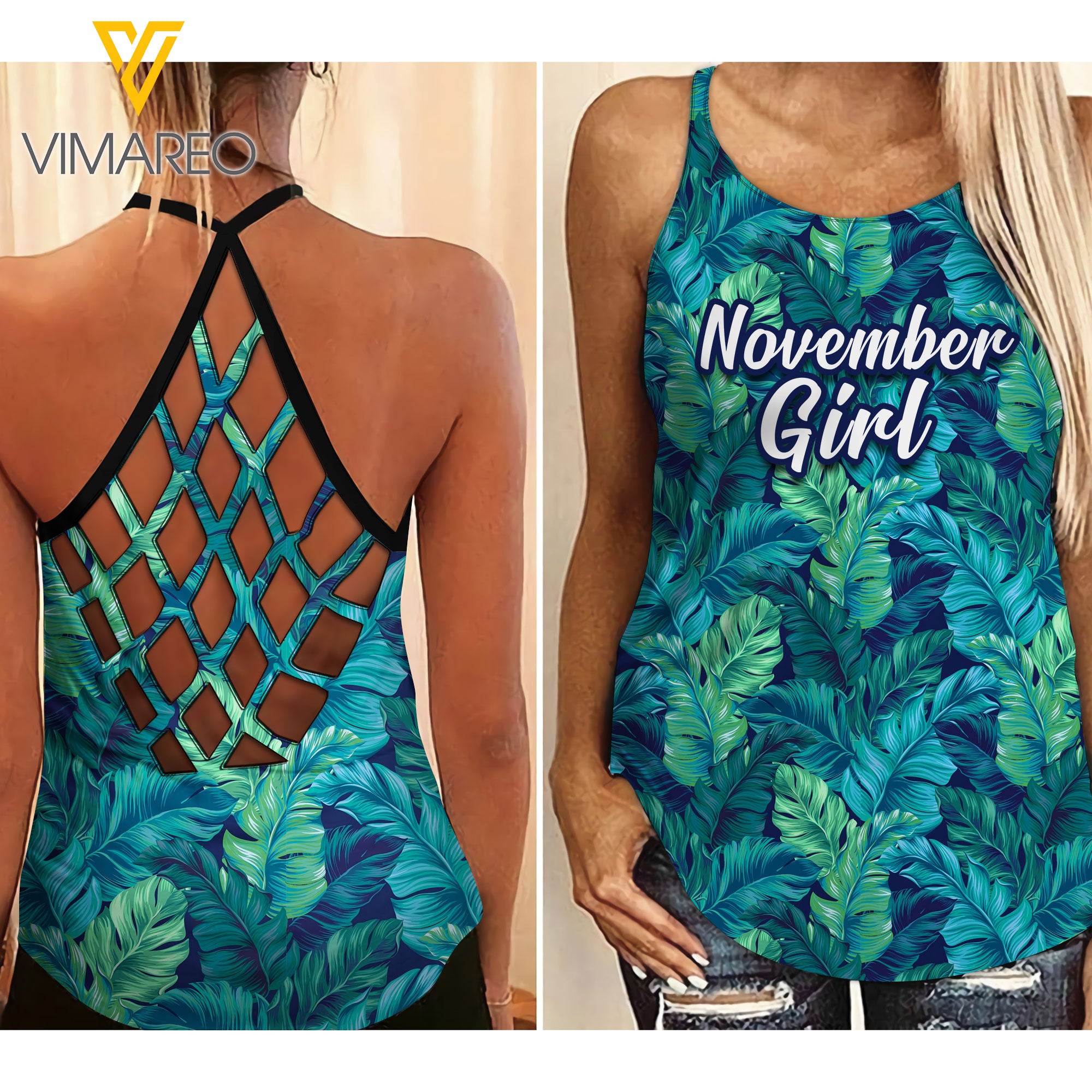 NOVEMBER GIRL HAWAII PATTERN CRISS-CROSS TANK TOP