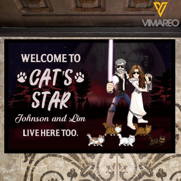 Personalized Welcome to Cat's Star Christmas Doormat Printed NOV-MA23