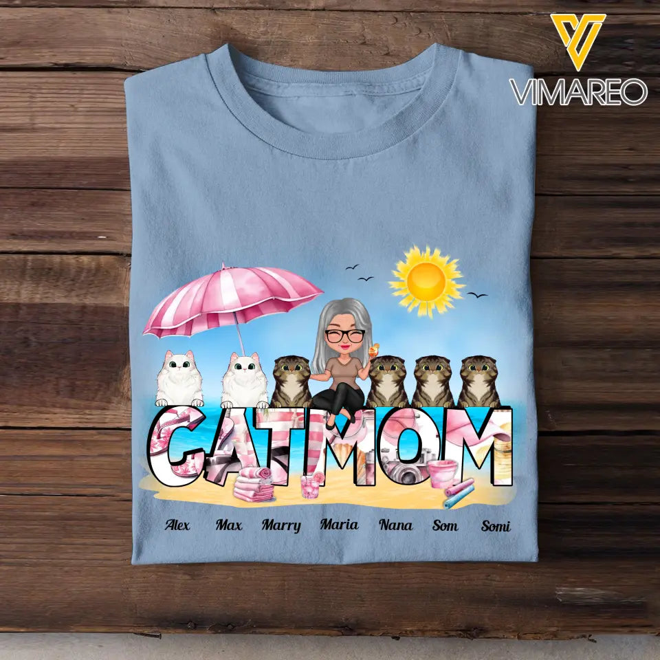 Personalized Cat Mom Summer Beach Pink Colors Art 2D Print For Cat Lovers