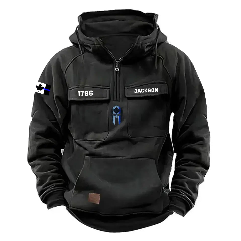 Personalized Canadian Police Flag Spartan Helmet American Retro Hooded Sweatshirt Printed KH241592