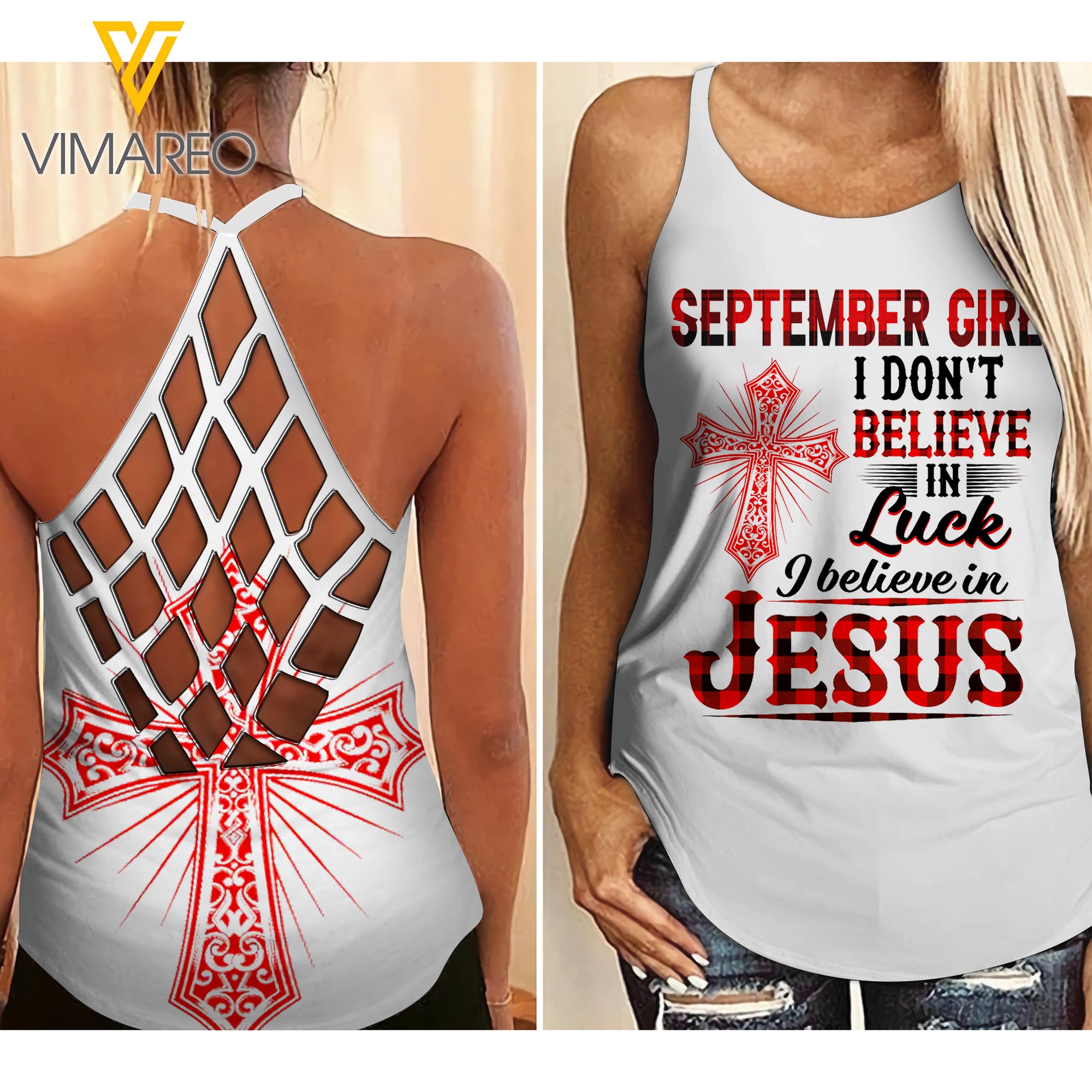 September girl Jesus Criss-Cross Open Back Camisole Tank Top 0907TQ
