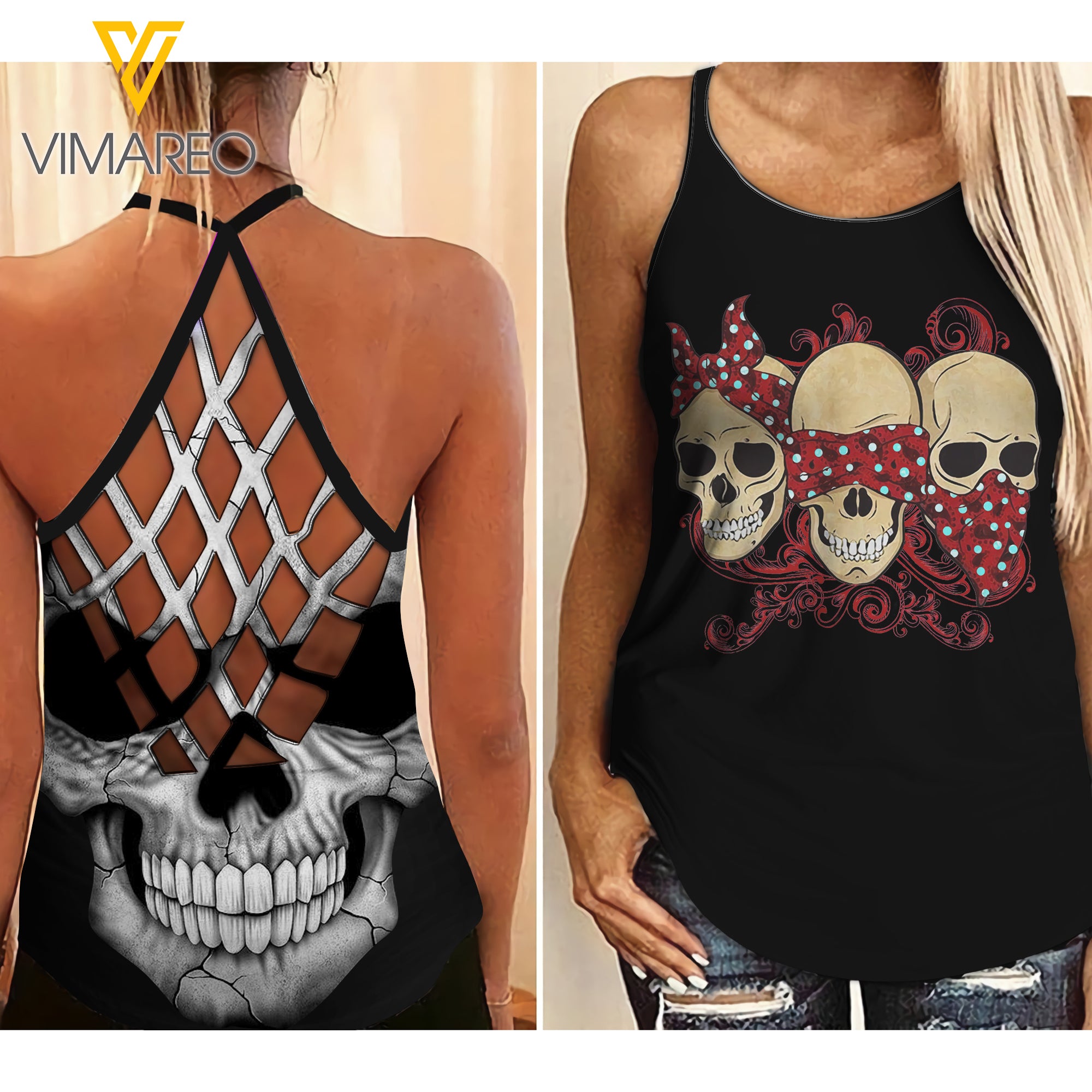 SKULL Criss-Cross Open Back Camisole Tank Top QMN