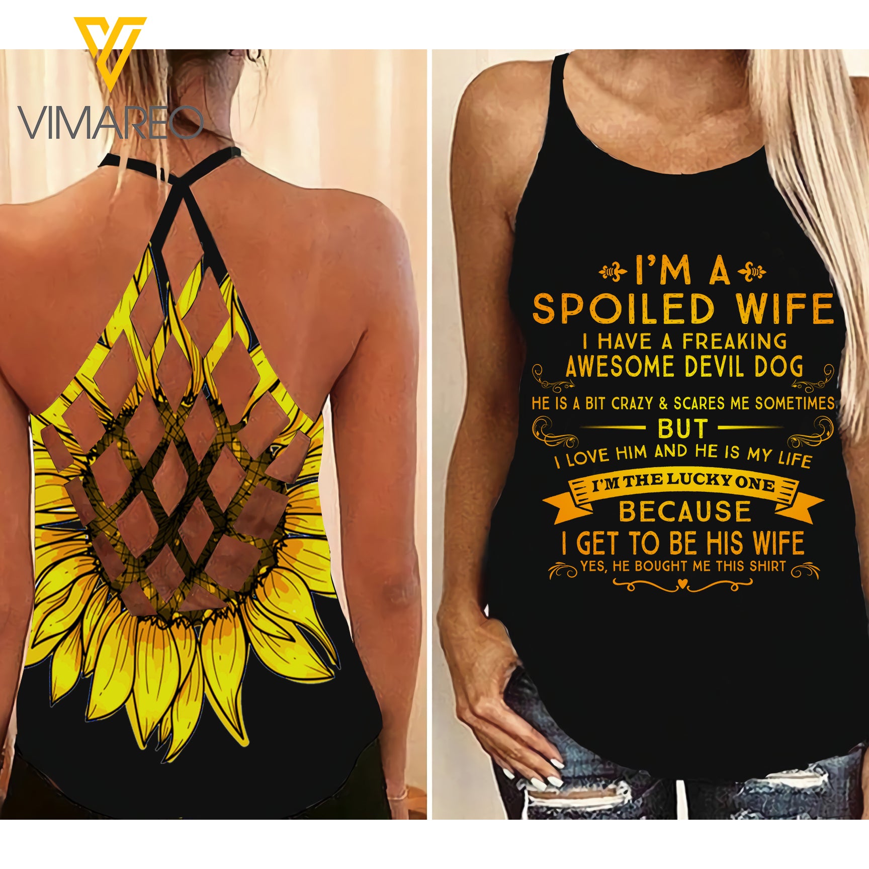 Spoiled wife-Devil dog Criss-Cross Open Back Camisole Tank Top