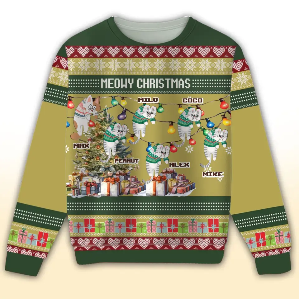 Personalized Meowy Christmas Christmas Cat Ugly Sweater Printed NMTVQ23621