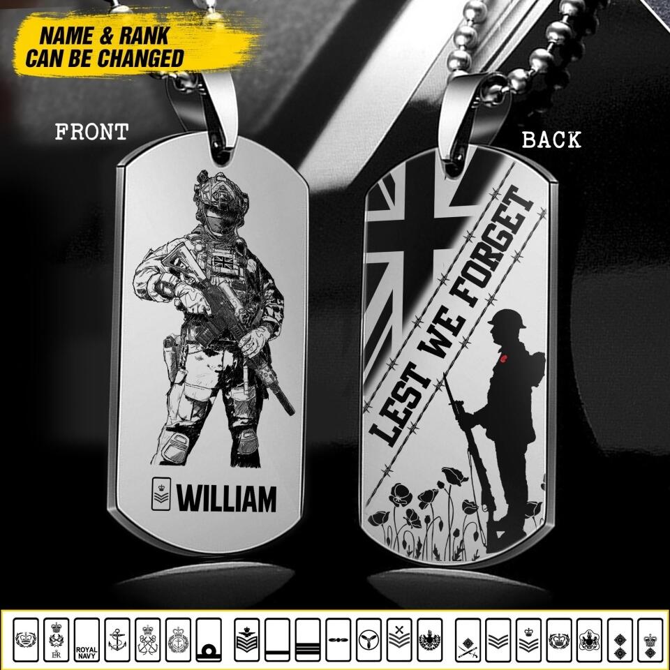 Personalized Lest We Forget UK Solider/ Veteran Necklaces Printed QTDT2207